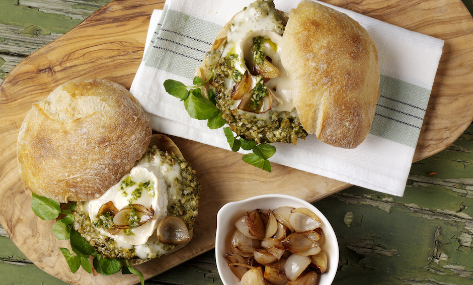 Goats Cheese & Mushroom Burgers With Caramelised Shallots